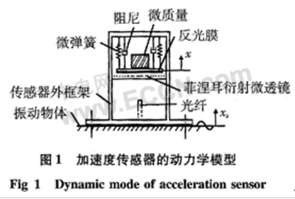 微彈簧一端與反光膜固定連接,另一端固定在傳感器的外框架上,這就形成了一個(gè)由微質(zhì)量、反光膜、微彈簧和外框架構(gòu)成的振動(dòng)系統(tǒng)。