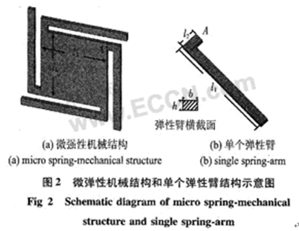 動(dòng)力學(xué)振動(dòng)系統(tǒng)是眾多慣性傳感器中的重要組成部分,其參數(shù)的選取決定了傳感器的性能的優(yōu)劣。針對(duì)基于菲涅耳衍射微透鏡的新型光學(xué)加速度傳感器設(shè)計(jì)了一種簡單實(shí)用的敏感加速度的振動(dòng)系統(tǒng),它是由一個(gè)微彈性機(jī)械結(jié)構(gòu)連接在外框架上構(gòu)成。微彈性機(jī)械結(jié)構(gòu)不僅是微型加速度傳感器重要組成部分,而且,在微型驅(qū)動(dòng)器、微位移計(jì)、微陀螺儀及其他慣性傳感器中也有著重要的應(yīng)用,在微機(jī)電系統(tǒng)(MEMS)中發(fā)揮著重要的作用。目前,MEMS中類似于微彈性機(jī)械結(jié)構(gòu)的敏感裝置主要有硅懸臂梁、直角彈性結(jié)構(gòu)及結(jié)構(gòu)更復(fù)雜的硅彈簧等。微彈性機(jī)械結(jié)構(gòu)是在一塊硅片上通過簡單的MEMS工藝加工的,可以通過改變硅片的厚度和彈性臂的寬度來設(shè)計(jì)不同的彈性系數(shù)和振動(dòng)系統(tǒng)的固有頻率,以滿足傳感器的要求。具體討論了微彈性機(jī)械結(jié)構(gòu)參數(shù)的選取,并且,模擬分析了傳感器的性能和誤差。