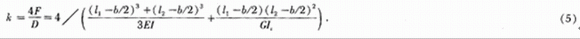 式中 為l1桿的轉(zhuǎn)角;It為相當(dāng)極慣性矩,當(dāng)h≥b時(shí),It=βhb3,β由h/b的數(shù)值決定,當(dāng)h