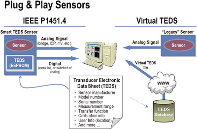 IEEE1451.3啟動(dòng)處在多分支網(wǎng)絡(luò)中的傳感器的運(yùn)行;于2003年通過(guò)的IEEE P1451.4規(guī)定與數(shù)字傳感器相關(guān)的數(shù)據(jù)(像傳感器的類別、型號(hào)、操作參數(shù)以及位置等)必須能夠以電子數(shù)據(jù)表的格式從整合在傳感器中的EEPROM(電可擦除只讀存儲(chǔ)器)存儲(chǔ)器中讀取,這種數(shù)據(jù)表被稱為變換器電子數(shù)據(jù)表(TEDS-Transducer Electronic Data Sheet)。IEEE P1451.4標(biāo)準(zhǔn)極大地簡(jiǎn)化了傳感器的布線以及更換故障傳感器的問(wèn)題。它同時(shí)也免除了傳感器在設(shè)置和校準(zhǔn)方面的人工干預(yù),這種干預(yù)即費(fèi)時(shí)又易出錯(cuò)。這樣傳感器就成了即插即用的裝置。在國(guó)家儀器網(wǎng)站(National Instruments’ web site)中有一個(gè)有效TEDS的數(shù)據(jù)庫(kù),它包括了可以在IEEE P1451網(wǎng)絡(luò)中使用的各種老式的或沒(méi)有EEPROM的傳感器的專門資料。IEEE 1451.5標(biāo)準(zhǔn)仍在審核階段,它規(guī)定的是將TEDS連接到無(wú)線網(wǎng)絡(luò)中的必要條件,如與802.11、藍(lán)牙或ZigBee等的連接。最近又提出了IEEE 1451.6標(biāo)準(zhǔn)議案,它定義TEDS和CAN總線的接口。