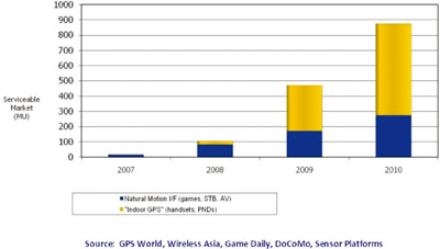 市場(chǎng)調(diào)研機(jī)構(gòu)iSuppli認(rèn)為,移動(dòng)傳感器(motion sensors)將代替?zhèn)鹘y(tǒng)的傳感器成為MEMS市場(chǎng)的主要推動(dòng)力,至少在2012年之前會(huì)是這樣。尤其是加速計(jì)(accelerometer),它在便攜式消費(fèi)電器中將被用來(lái)啟動(dòng)一系列高級(jí)界面功能。傳感器在消費(fèi)電器中的應(yīng)用正在迅速飆升,像用于游戲、筆記本電腦和數(shù)碼相機(jī)中的移動(dòng)傳感器就是實(shí)例。雖然以傳感器為基礎(chǔ)的微型機(jī)電系統(tǒng)(MEMS-microelectromechanical systems)的價(jià)格已經(jīng)在迅速下降,它們還是太昂貴而不能被用在一些對(duì)價(jià)格敏感的消費(fèi)產(chǎn)品中。