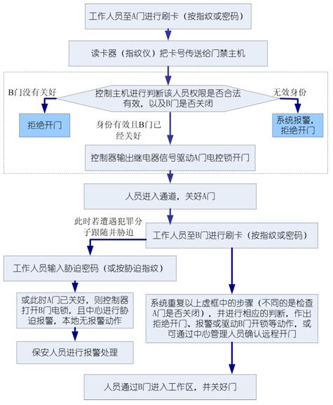 根據(jù)不同場所要求,本系統(tǒng)可以擴展為ABC三門以及更多門的多門互鎖門禁,來達到更高級別的安全要求。還可以配合中心遠程控制,來實現(xiàn)本地確認開門及中心遠程開門相結合的AB互鎖雙門門禁。系統(tǒng)功能特點如下: