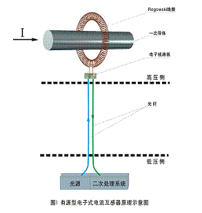 有源型電子式電流互感器特點(diǎn)是一次傳感器為空心線圈,高壓側(cè)電子器件需要由電源|穩(wěn)壓器供電方能工作。其原理如下圖所示: