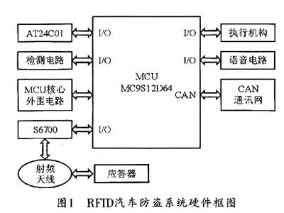RFID系統(tǒng)為該汽車防盜系統(tǒng)的核心組成部分。一般由標(biāo)簽(TAG,即射頻卡)、閱讀器、射頻天線三部分組成。標(biāo)簽由耦合元件及芯片組成,含有內(nèi)置天線,用于和射頻天線間通訊;閱讀器用于讀取(在讀寫卡中還可以寫入)標(biāo)簽信息;射頻天線用于在標(biāo)簽和讀取器間傳遞射頻信號。