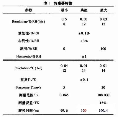 該傳感器集環(huán)境溫、濕度和光照度傳感器于一體,使測(cè)量系統(tǒng)的成本和體積大為降低,減少了系統(tǒng)設(shè)計(jì)的復(fù)雜性。