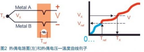 不過,電壓和溫度間是如圖2所示的非線性關(guān)系,溫度由于電壓和溫度是非線性關(guān)系,因此需要為參考溫度(Tref)作第二次測量,并利用測試設(shè)備軟件和∕或硬件在儀器內(nèi)部處理電壓-溫度變換,以最終獲得熱偶溫度(Tx)。Agilent34970A和34980A數(shù)據(jù)采集器均有內(nèi)置的測量了運(yùn)算能力。