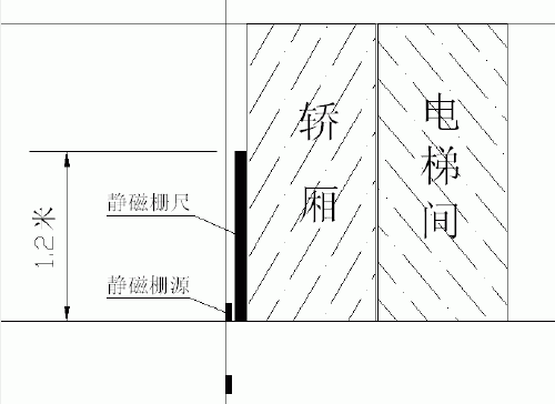 要使電梯到達(dá)平層區(qū)域后能自動(dòng)平層,必須有一套自動(dòng)控制系統(tǒng),即電梯的自動(dòng)控制裝置。該裝置的控制部分是靜磁柵位移傳感器,以30層電梯為例,安裝圖如下圖所示。