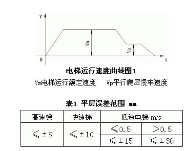 根據(jù)電梯運(yùn)行的特點(diǎn)及以上要求,電梯的運(yùn)行速度應(yīng)當(dāng)符合圖1所示曲線。平層誤差應(yīng)符合表1規(guī)定。