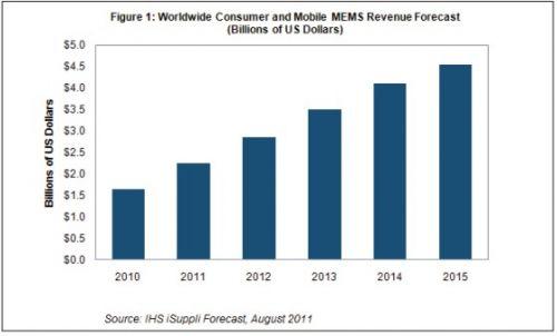 據(jù)IHS公司的消費與移動MEMS市場研究報告,微機電系統(tǒng)(MEMS)市場中最大和最有活力的領域是消費與移動器件,通過積極開拓智能手機和平板應用,2011年MEMS市場將再度實現(xiàn)創(chuàng)紀錄的增長率。