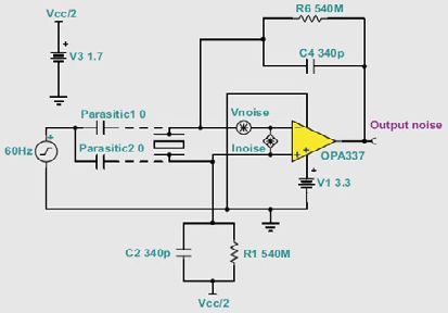 圖17 60Hz共模噪聲源對差分輸入放大器影響情況模型