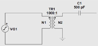 最后,如果這種生成器需要代表實際物理信號,則可以使用變壓器,如圖2所示。本例中,我們建模了一個具有0.5pC/g靈敏度和500pF寄生電容的生成器。正弦波生成器每單位g輸出1V以實現(xiàn)仿真。變壓器在其次級線圈將它向下調(diào)節(jié)至 1mV.施加給C1(500 pF)的1mV擺動,將會如我們預計的那樣在下一級注入 Q = VC = 0.5 pC.