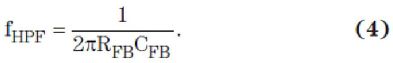 由于放大器的信號輸入為虛擬接地,因此輸入電流形成了一種輸出電壓擺動;并且高頻增益由CFB的值設定(RFB 影響減小,在"帶寬"部分后面再進行敘述)。請注意,電容越小,增益越大。增益的近似值為: