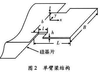 Aasys是一個可在微機上使用的綜合性有限元軟件,是微機電系統(tǒng)設(shè)計中廣泛使用的有限元分析軟件。通過有限元的分析計算可以預測懸臂梁上引力分布、固有頻率、可測最大加速度等,進而指導梁結(jié)構(gòu)參數(shù)的選取。經(jīng)過對梁結(jié)構(gòu)有限元的計算分析選取單臂梁、雙臂梁結(jié)構(gòu)參數(shù),如表1所示。