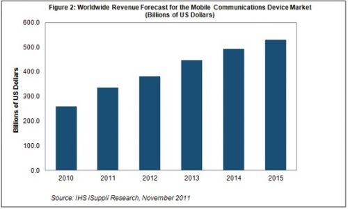 據(jù)IHS iSuppli公司的無線通信市場(chǎng)研究報(bào)告,智能手機(jī)和平板電腦在消費(fèi)者中日益普及,今年將推動(dòng)移動(dòng)通信產(chǎn)品與無線基礎(chǔ)設(shè)施設(shè)備營(yíng)業(yè)收入大增29%。