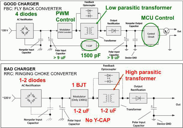 設(shè)計用于配合特定電話工作的OEM廠商的充電器具有較嚴格的噪聲規(guī)格,同時,在充電電路中廣泛采用USB連接器為配件市場創(chuàng)造了巨大的機會。為了在其中進行競爭,配件廠商充分地降低充電器成本。采用低成本電子器件的充電器給手機充電將注入很多噪聲到觸摸屏,而導致其很可能無法使用。