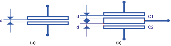 圖1 單電容式和差分電容式傳感器 (a) 單電容傳感器;(b) 差分電容傳感器