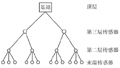 圖1為傳感器節(jié)點(diǎn)在網(wǎng)絡(luò)中的組織結(jié)構(gòu)。該方法需要一個(gè)異類(lèi)網(wǎng)絡(luò):第二層和第三層傳感器節(jié)點(diǎn),在傳輸范圍和電池壽命方面要比末端傳感器更強(qiáng)。