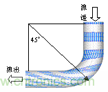 彎管傳感器利用管道系統(tǒng)彎頭作檢測元件,無附加壓損及專門安裝節(jié)流元件是其優(yōu)點,彎管取壓口開在45o處,取壓口結(jié)構(gòu)與標(biāo)準(zhǔn)孔板相同,兩個平面內(nèi)的兩個取壓口對準(zhǔn),使其能處于同一條直線上,如圖4。