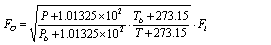 式中,F(xiàn)iFoPkPa);PbkPa);T(℃);Tb(℃)。—參比溫度—測量溫度—參比壓力(—測量壓力(—補償后流量;—測量流量;