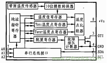 與I2C兼容的接口總線在AD7416上電后就一直有效,因此在芯片處于休眠狀態(tài)下仍可進(jìn)行片內(nèi)數(shù)據(jù)的讀出和寫(xiě)入。