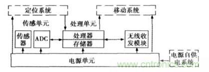 節(jié)點(diǎn)是無線傳感器網(wǎng)絡(luò)的基本功能單元,具體應(yīng)用不同,節(jié)點(diǎn)的設(shè)計(jì)也不盡相同。傳感器節(jié)點(diǎn)的基本組成模塊有:傳感單元、處理單元、通信單元以及電源部分,節(jié)點(diǎn)的結(jié)構(gòu)見圖2。此外,根據(jù)具體應(yīng)用要求可以添加功能單元,如:定位系統(tǒng)、移動(dòng)系統(tǒng)以及電源自供電系統(tǒng)等。