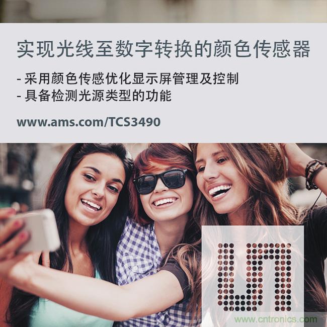 ams高級光學傳感器產品高級市場經理David Moon表示:“消費電子設備的觸摸顯示屏是一個重要的競爭點。制造商可以通過更加智能的顯示屏管理功能使自己的品牌脫穎而出。TCS3490五通道顏色傳感器不僅賦予顯示屏更生動、更具吸引力的色彩,也在室內、室外不同光照條件下使用戶的雙眼獲得更舒適的視覺體驗,因為該傳感器的CCT測量更緊密貼合人眼所能感知的色彩和亮度。”