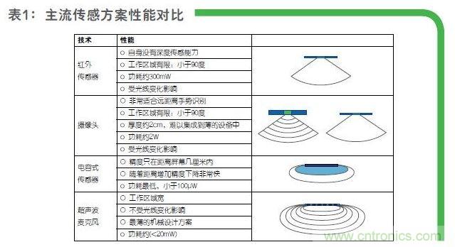 【導(dǎo)讀】之前或許您已經(jīng)聽(tīng)說(shuō)過(guò)利用超聲波麥克風(fēng)進(jìn)行手勢(shì)識(shí)別,但很多工程師可能還會(huì)認(rèn)為這是停留在實(shí)驗(yàn)室的項(xiàng)目,事實(shí)上,利用超聲波進(jìn)行手勢(shì)識(shí)別的方案已經(jīng)相當(dāng)成熟,而且有其獨(dú)特的優(yōu)勢(shì)。這里小編為大家對(duì)比下超聲波麥克風(fēng)和目前主流傳感器的性能。