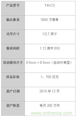 【導(dǎo)讀】東芝宣布推出“T4KC3”,一款1600萬像素并實現(xiàn)低功耗的BSI CMOS圖像傳感器。新產(chǎn)品可降低功耗的低功耗電路設(shè)計,在240mW或更低功耗下實現(xiàn)30fps的全分辨率輸出。樣品發(fā)貨計劃于今年9月開始。