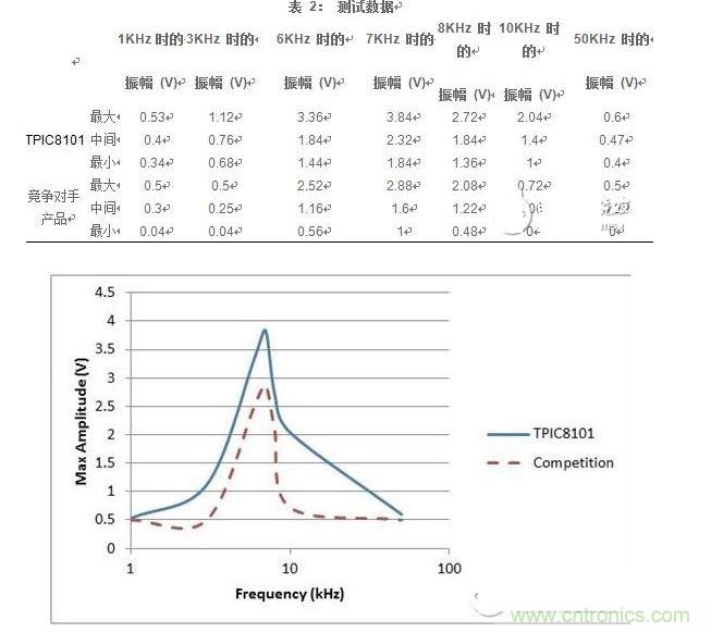 圖 2:測(cè)試結(jié)果–與競(jìng)爭(zhēng)產(chǎn)品的振幅比較(相對(duì)于頻率)