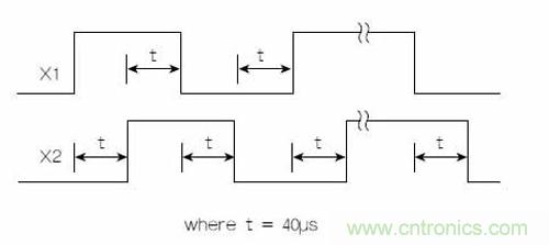 該芯片產生的正交X方向輸出信號模擬了普通編碼器的輸出。X和Y信號都可以用于2D系統(tǒng)。OM02以最高約25kHz的頻率產生X1和X2正交信號。圖1顯示了正向X運動(向右方向)的時序圖。這種正交輸出在需要時還可以用于直流步進電機控制。