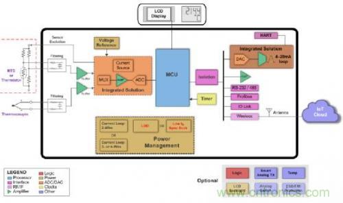 圖 1:針對(duì)過(guò)程控制應(yīng)用的溫度變送器方框圖