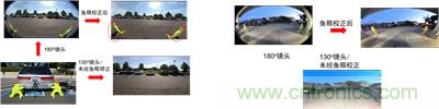 ASX344AT的魚眼畸變校正功能提供180o更廣的場景覆蓋,傳感器動態(tài)范圍體現(xiàn)出良好的DR-Pix像素技術(shù),無論在白天還是夜間都較未經(jīng)魚眼校正的鏡頭更具安全優(yōu)勢。如圖1所示,未經(jīng)魚眼校正的鏡頭沒有捕捉到小黃人的圖像信息,而經(jīng)魚眼校正后,駕駛員可從顯示器看到車后的兩個小黃人,從而避免倒車時的安全隱患。