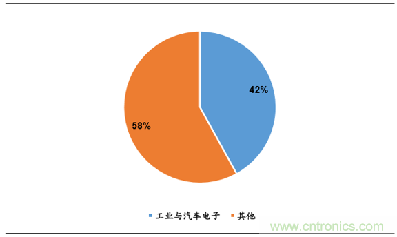 從應用領域來看,工業(yè)、汽車電子、通信電子、消費電子四部分是傳感器最大的市 場。國內工業(yè)和汽車電子產品領域的傳感器占比約 42%左右,而發(fā)展最快的是汽車電子和通信電子應用市場。