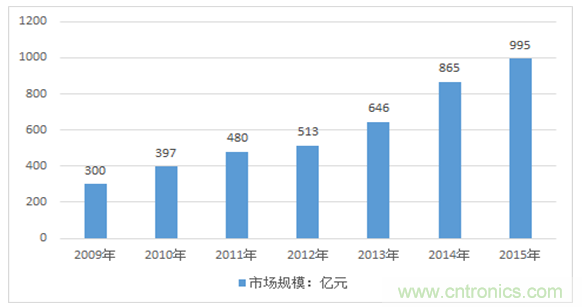 2010-2015年中國傳感器市場規(guī)模走勢圖