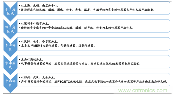 國內傳感器企業(yè)的主要布局區(qū)域