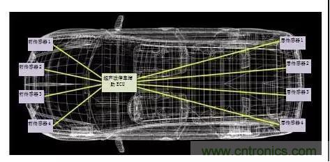 超聲波停車輔助也被稱為停車輔助系統(tǒng)、停車引導系統(tǒng)和倒車輔助。這些系統(tǒng)可實現(xiàn)從簡單地檢測周圍物體并通過聲音警示駕駛員,到幾乎沒有人為操作的自動停車。通常,這些系統(tǒng)擁有4-16個感應器,巧妙地圍繞車身安裝,以提供所需的檢測覆蓋,如圖2所示。