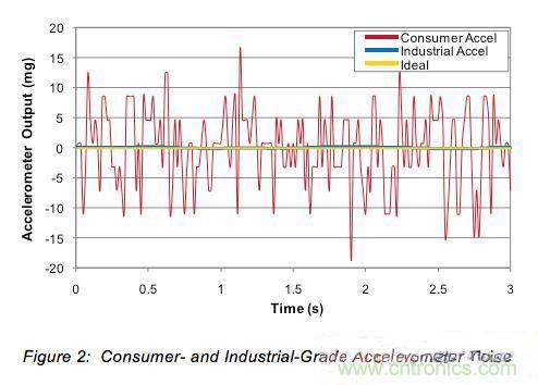 圖2:消費級和工業(yè)級加速度計噪聲。