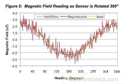 圖5:當傳感器旋轉(zhuǎn)360°時的磁場讀數(shù)。