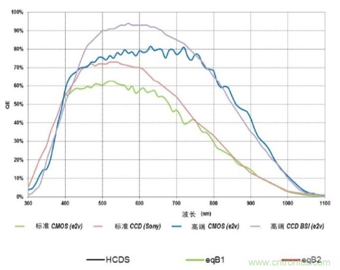 量子效率(Quantum efficiency ,QE) 是直接影響圖像傳感器光電性能的因素,因?yàn)楣怆娹D(zhuǎn)換效率的任何損耗都會(huì)直接減低信噪比 (Signal-To-Noise- Ratio,SNR) 。它的影響是兩方面的,因?yàn)楫?dāng)散粒噪聲(信號(hào)的平方根)是主要噪聲源時(shí),QE不單是信噪比的被除數(shù)(信號(hào)),同時(shí)也是除數(shù)(噪聲)。在這一點(diǎn)之上,CCD和CMOS處于同一水平,可是CCD在QE改進(jìn)方面累積有多年的技術(shù)工藝優(yōu)化,而在CIS的QE改進(jìn)發(fā)展相對(duì)較遲?;诠栉镔|(zhì)的物理特性,較長(zhǎng)的波長(zhǎng)能穿透光敏轉(zhuǎn)換地帶,所以會(huì)使用厚的外延材料來(lái)增加上紅色和近紅外線波長(zhǎng)的QE。根據(jù)比爾朗伯定律(Beer-Lambert law),被吸收的能量是與介質(zhì)的厚度成指數(shù)關(guān)係。高端應(yīng)用的 CCD 利用較厚的硅物質(zhì)和背照(back side illumination ,BSI)工藝以恢復(fù)高寬帶QE和近紅外線(near infrared ,NIR)敏感度,因而擁有優(yōu)勢(shì)。