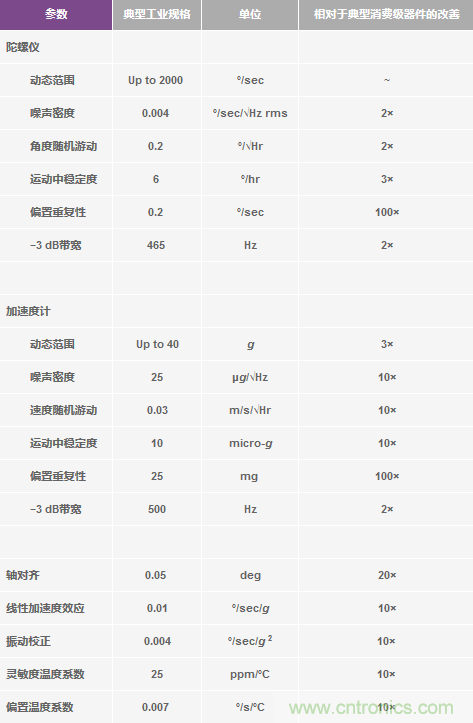 表6.工業(yè)MEMS器件對所有已知潛在誤差源進行全面測定,通常能實現(xiàn)消費類器件高出一個數(shù)量級或更高的精度水平