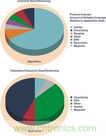 與其形成鮮明對比的是,工業(yè)導航定位推算方案是針對系統(tǒng)性能定義而設計的,要根據(jù)具體精度要求選擇組件。更高質(zhì)量的慣性傳感器允許其發(fā)揮主要作用,適當利用其他傳感器來縮小不確定性差距。比起推算/估算可靠的傳感器讀數(shù)間的位置,算法在概念上更關(guān)注最佳權(quán)重、切換和傳感器互補,以及對于環(huán)境和實時運動動力學的認識。