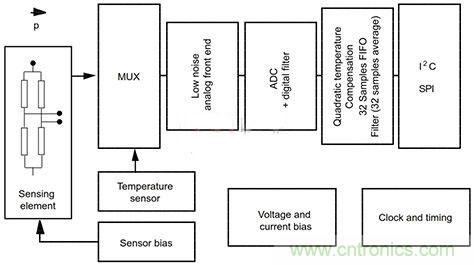 圖3:LPS25H可在一個(gè)10針腔洞穿LGA封裝(HCLGA),其測量為2.5&TImes;2.5&TImes;1毫米,并躲藏允許外部壓力到達(dá)壓電傳感元件。該接口使用標(biāo)準(zhǔn)的CMOS工藝,允許高度集成的設(shè)計(jì)被修整,以更好地匹配感測元件特性的專用電路。制造。整個(gè)測量鏈?zhǔn)怯梢粋€(gè)低噪聲放大器,其中,所述MEMS傳感器(壓力,溫度)的電阻不平衡轉(zhuǎn)換為模擬電壓,向用戶提供通過嵌入24位模擬 - 數(shù)字轉(zhuǎn)換器(組成ADC),帶有一個(gè)輸出數(shù)據(jù)速率(ODR),它是可選擇的從1赫茲到25赫茲,單觸發(fā)選項(xiàng)。所述LPS25H可在一個(gè)10針腔洞穿LGA封裝(HCLGA),其測量為2.5×2.5×1毫米,并躲藏允許外部壓力到達(dá)傳感元件。使用壓電元件允許它的溫度范圍從-30℃至+ 105℃上操作。