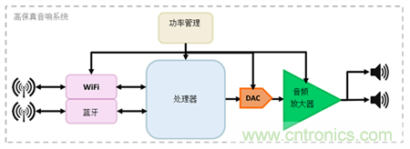 處理器執(zhí)行各種音頻處理功能,如解碼和信號(hào)均衡,同時(shí)也處理Wi-Fi和/或藍(lán)牙通信軟件堆棧。過去,CD品質(zhì)的采樣頻率可能已足夠。但是今天的高保真音頻系統(tǒng)對(duì)信號(hào)鏈中的處理器提出了其它要求,因?yàn)楦弑U嬉糍|(zhì)要求在24位音樂信號(hào)流中提供48kHz至192kHz范圍內(nèi)的采樣率。