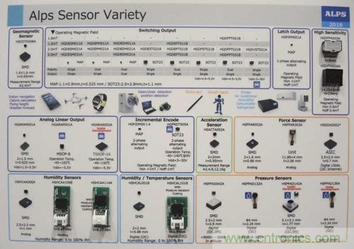 日本阿爾卑斯電氣株式會社(Alps Electric)展示其傳感器組合(下圖),這同時也可作為傳感器領域應用多樣化的一個指標。該公司并未在活動中發(fā)表新芯片,而是與網關供貨商、美國云端運算軟件供貨商Mode連手展示使用其模塊開發(fā)的端對端物聯網解決方案。