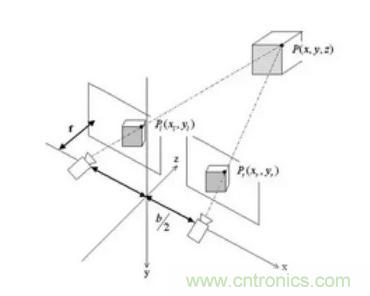 雙目視覺(jué)的測(cè)距本質(zhì)上也是三角測(cè)距法,由于兩個(gè)攝像頭的位置不同,就像我們?nèi)说膬芍谎劬σ粯樱吹降奈矬w不一樣。兩個(gè)攝像頭看到的同一個(gè)點(diǎn)P,在成像的時(shí)候會(huì)有不同的像素位置,此時(shí)通過(guò)三角測(cè)距就可以測(cè)出這個(gè)點(diǎn)的距離。與結(jié)構(gòu)光方法不同的是,結(jié)構(gòu)光計(jì)算的點(diǎn)是主動(dòng)發(fā)出的、已知確定的,而雙目算法計(jì)算的點(diǎn)一般是利用算法抓取到的圖像特征,如SIFT或SURF特征等,這樣通過(guò)特征計(jì)算出來(lái)的是稀疏圖。