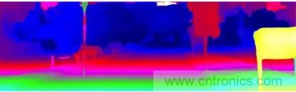 實(shí)際輸出的深度圖,不同的顏色代表不同的距離