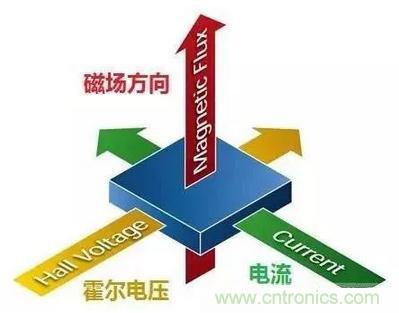 在導(dǎo)體上外加與電流方向垂直的磁場,會(huì)使得導(dǎo)線中的電子受到洛倫茲力而聚集,從而在電子聚集的方向上產(chǎn)生一個(gè)電場,此電場將會(huì)使后來的電子受到電力作用而平衡掉磁場造成的洛倫茲力,使得后來的電子能順利通過不會(huì)偏移,此稱為霍爾效應(yīng)。而產(chǎn)生的內(nèi)建電壓稱為霍爾電壓。