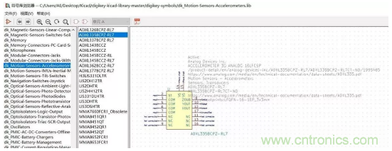 KiCad是一種開源免費(fèi)的電子設(shè)計(jì)自動(dòng)化 (EDA) 工具,能滿足基本的原理圖與PCB板設(shè)計(jì)功能,Digi-Key推出自己的Digi-Key KiCad 電子元器件庫(kù),幫助加速設(shè)計(jì)進(jìn)程。其中包括多個(gè)ADI加速度傳感器的原理圖庫(kù)與封裝庫(kù)。舉例:ADI的 ADXL335BCPZ-RL7。