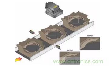 傳統(tǒng)的單光束傳感器無法檢查許多零件或組件。通常,用戶需要確定幾個部件中的任何一個或多個部件是否處于組件上的適當(dāng)位置。光幕系統(tǒng)可以對整個零件進(jìn)行輪廓分析,以查找丟失或放錯位置的組件。在該示例中,光幕正在檢查氣缸蓋的表面以確保在自動裝配過程中所有閥門都安置在頭部中。