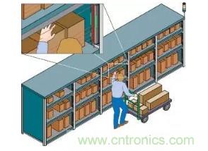 順序手動裝配中人的準(zhǔn)確性也是防錯的一個大問題。PLC控制的“揀選”系統(tǒng)使用指示下一個要選擇的項目的燈,以及每個箱前面的光幕來驗證是否已經(jīng)采取了正確的部件。這些系統(tǒng)通過減少錯過的零件以及以錯誤順序組裝的零件來提高裝配操作的質(zhì)量百分比。除了裝配過程的防錯之外,它們還通過在裝配過程中始終驗證裝配工最后停止的位置來提高工人效率,即使在休息或停工之后也是如此。這種完全可視化的通信系統(tǒng)也是一種全球解決方案,可消除語言障礙和技術(shù)能力等培訓(xùn)障礙。該圖顯示了倉庫應(yīng)用程序。